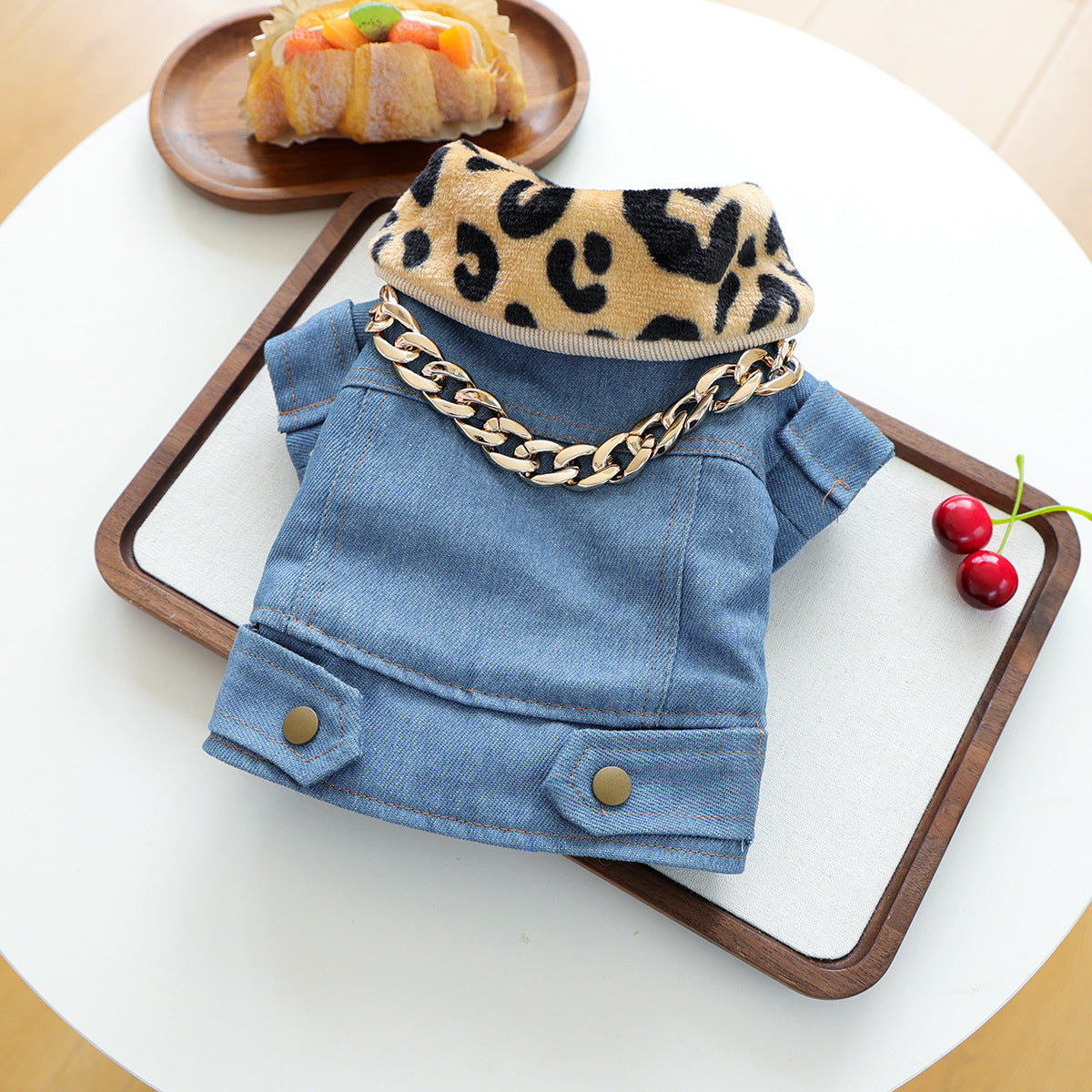 The Kumago® Luxe Denim Jacket redefines pet streetwear with a bold touch of luxury. Crafted from premium denim and elevated with a plush leopard-print collar and a statement gold-tone chain, this jacket is the ultimate blend of street chic and extravagance. Perfect for pets who love to command attention, it’s more than clothing – it’s a lifestyle statement.
