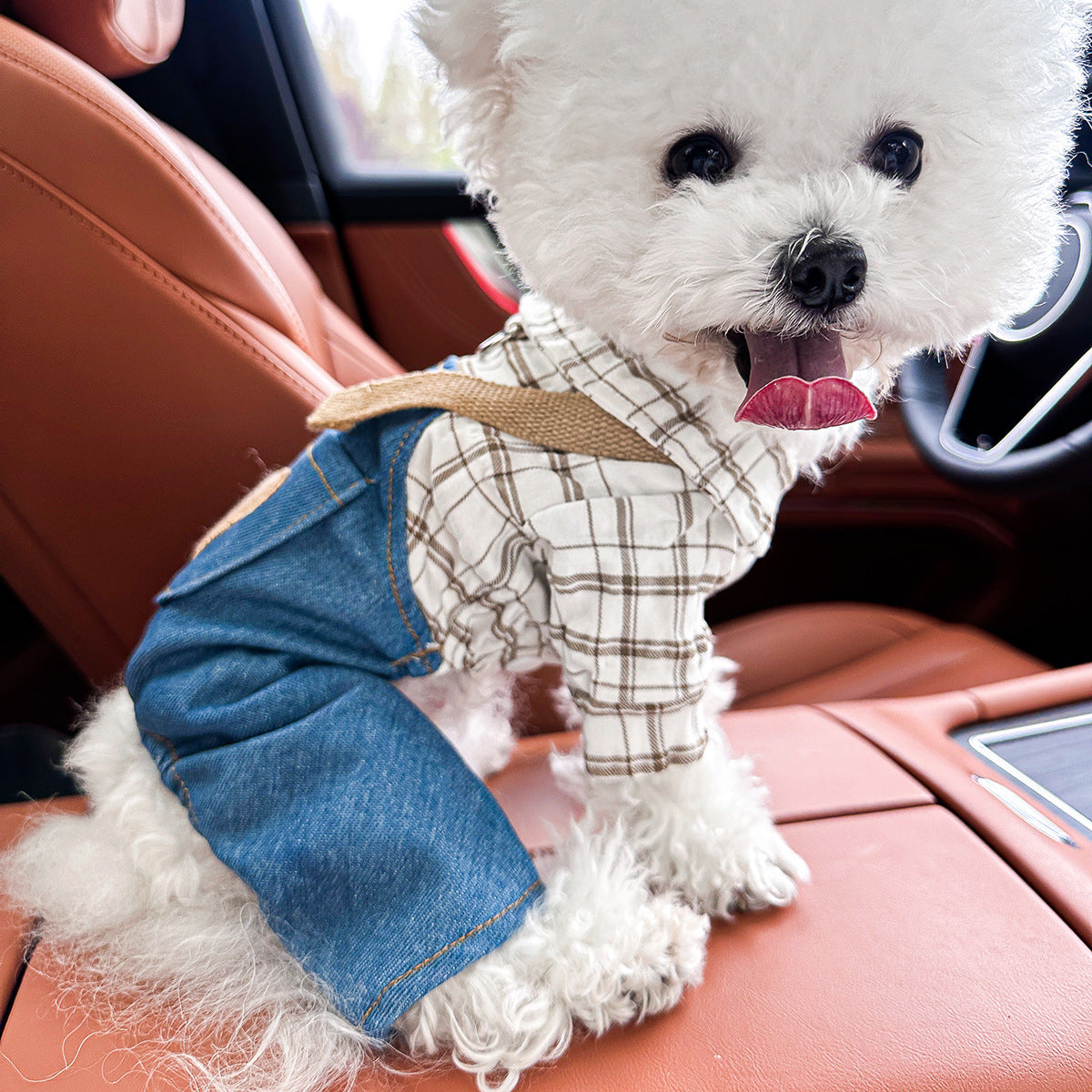 Let your furry friend step out in timeless cuteness with the Kumago® Teddy Bear Denim Overalls. Designed with a classic plaid shirt base and soft denim overalls, this outfit is finished with an adorable teddy bear patch on the back pocket. Perfect for playful days and casual strolls, it’s a stylish yet practical piece that combines comfort with charm.